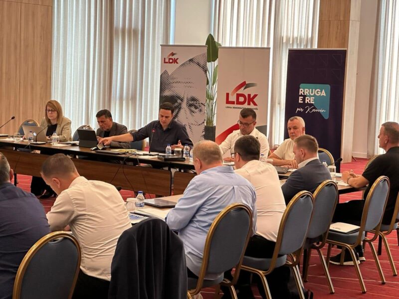 Në një fotografi nga takimi, shihen zyrtarë partiakë, përfshirë edhe kryetarin e LDK-së, Lumir Abdixhiku.